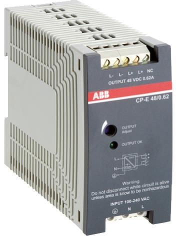 This is CP-E Switch Mode DIN Rail Power Supply 85 → 264V ac Input 48V dc Output 1.25A 60W manufactured by ABB. The manufacturer part number is 1SVR427031R2000 CP-E 48/1.25. Additionally, the product is supplied with 1 outputs. It has 48.0 to 55.0v of output voltage adjustment range. Load Regulation - ±0.5%. It has a/an dc output voltage . The given dimensions of the product include 115 x 43.5 x 88.5mm. The product is available in din rail mount configuration. It is a highly efficient product with an 89.0% of high efficiency. The product has +85°c maximum temperature. The product cp-e, is a highly preferred choice for users. Its electrical phase configuration includes 1. It has ac, dc input voltage. In addition, the height is 88.5mm. Furthermore, the product is 40.5mm wide. The product comes in 115mm depth. Its input voltage is 85 → 264 v ac / 90 → 375v dc. Features a 48v dc output voltage. While its minimum temperature is -10°c. Carries 50mv pk-pk ripple and noise. It comes in switched mode configuration. It carries 1.25a output current.