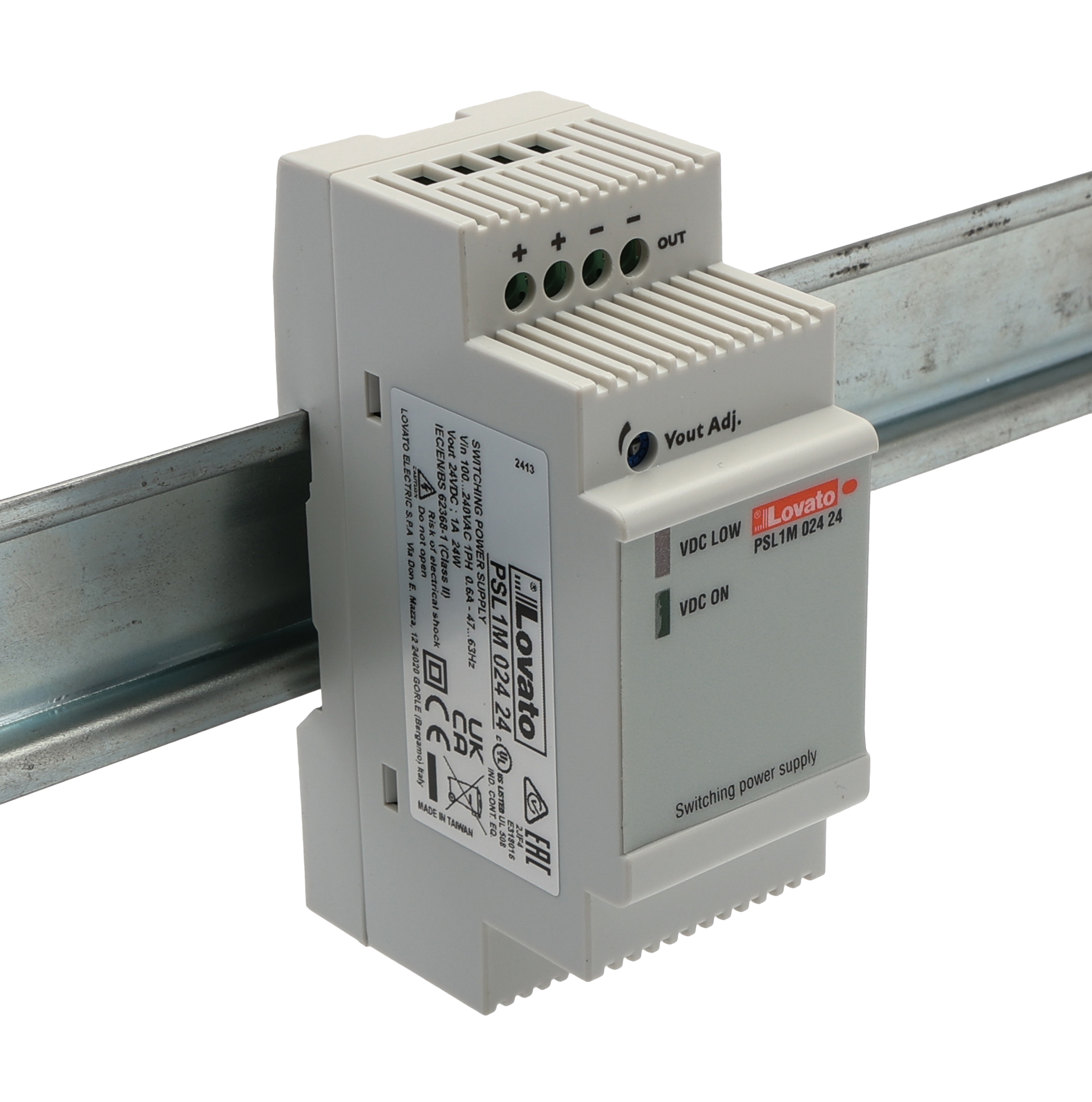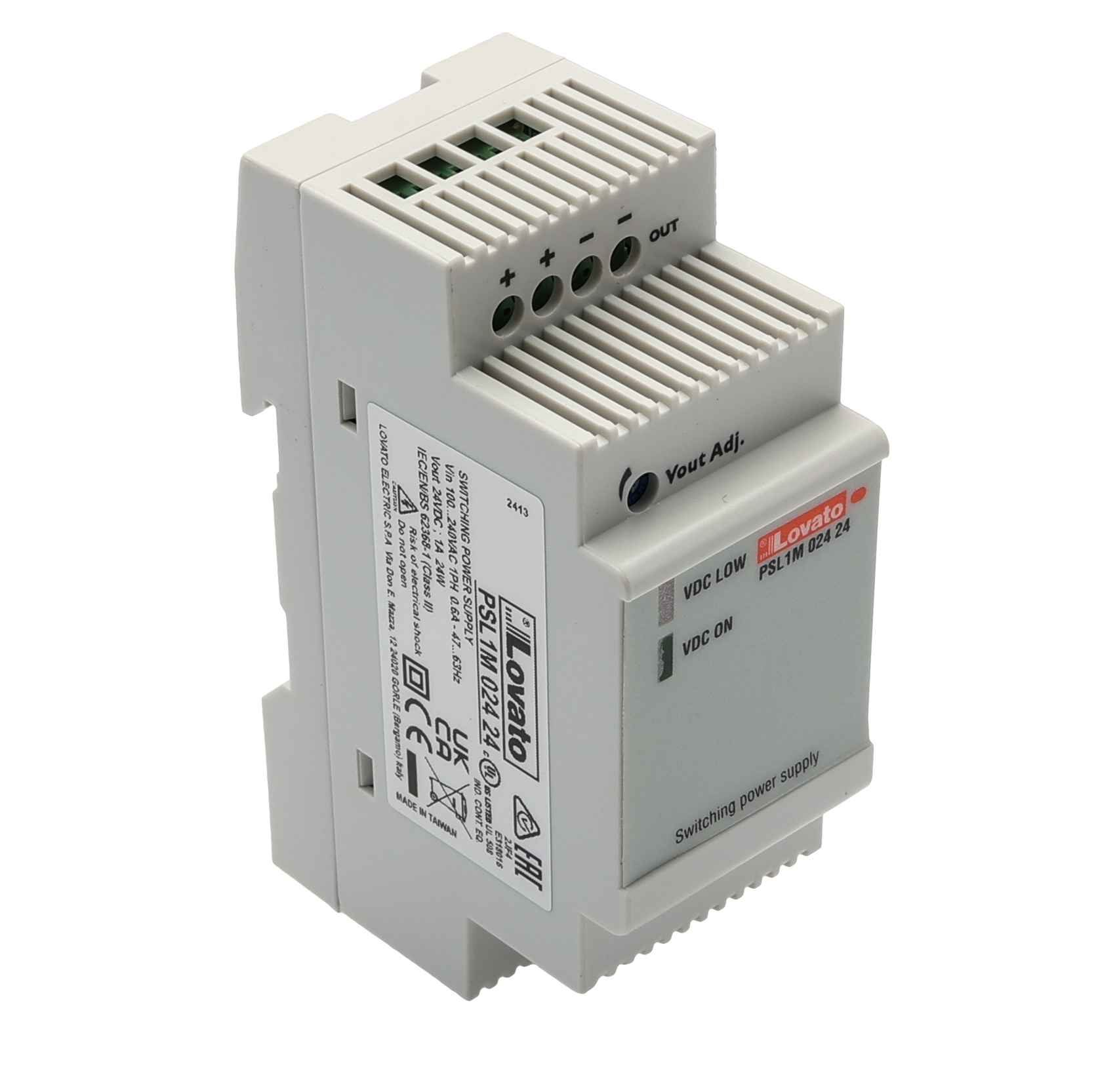 This is PSL DIN Rail Power Supply 240V ac ac Input 24V dc Output 1A Output manufactured by Lovato. The manufacturer part number is PSL1M02424. It has a/an dc output voltage . The given dimensions of the product include 91 x 132 x 46mm. The product is available in din rail mount configuration. The product psl, is a highly preferred choice for users. Its electrical phase configuration includes single phase. It has ac input voltage. In addition, the height is 96mm. Furthermore, the product is 35mm wide. The product comes in 56.2mm depth. Its input voltage is 240v ac. Features a 24v dc output voltage. It comes in switched mode power supply configuration. It carries 1a output current.