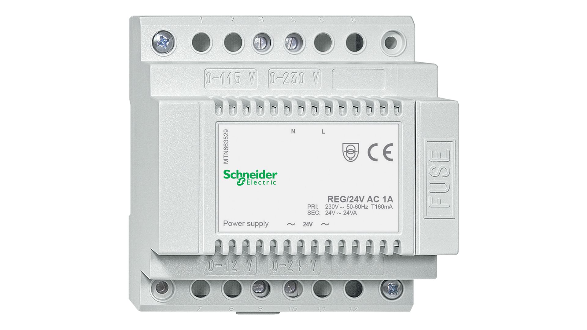 This is MTN Power Supply 207 → 253V ac ac Input 24V 1A Output 24W manufactured by Schneider Electric. The manufacturer part number is MTN663529. It carries 1a output current. The product knx, is a highly preferred choice for users. Its input voltage is 207 → 253v ac. It has ac input voltage. Features a 24v output voltage. It comes in power supply configuration.