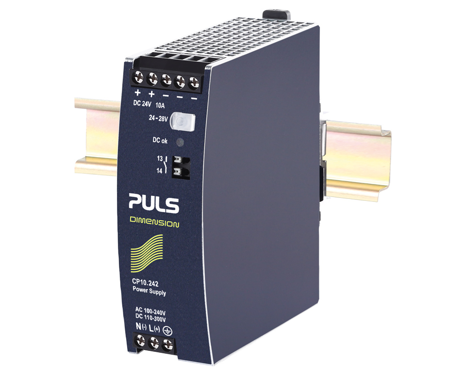 This is CP10 DIN Rail Power Supply 240V ac dc Input 24V dc Output 10A Output 240W manufactured by PULS. The manufacturer part number is CP10.242. It has a/an dc output voltage . It carries 10a output current. The product cp10, is a highly preferred choice for users. Its electrical phase configuration includes 1. It has ac, dc input voltage. Its input voltage is 240v. Features a 24v output voltage. It comes in power supply configuration.