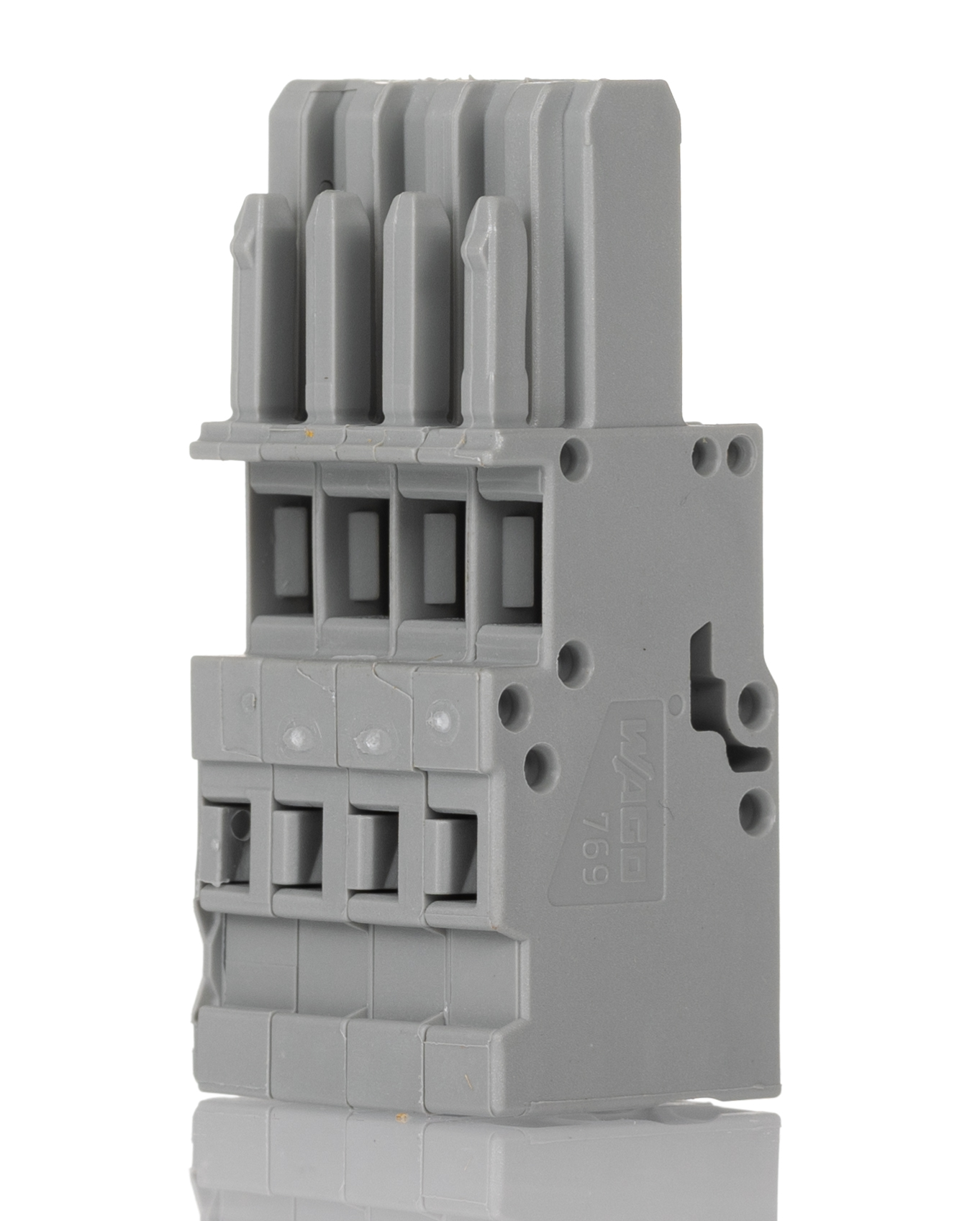 This is Female Plug 769 Series manufactured by Wago. The manufacturer part number is 769-104. The product has a current rating of 32a. Moreover, the product has a nominal 500 v dc voltage rating. The product 769, is a highly preferred choice for users. It has a decent grey colour. The product is made from highly stable and reliable polyamide. It is a type of female plug, 4 pole accessory. With 4mm² contact dimensions . The product is highly suitable for x-com system 769 series.