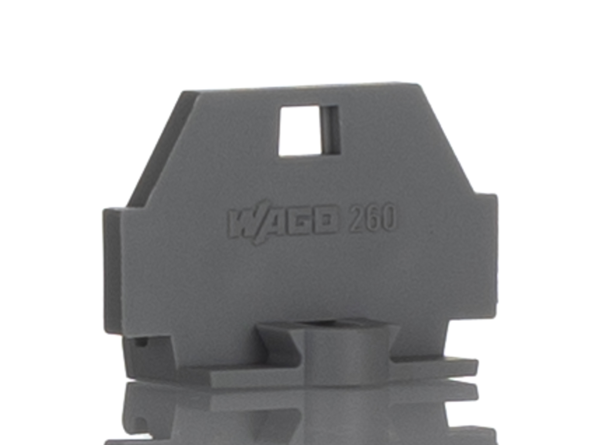 This is End Plate 260 Series manufactured by Wago. The manufacturer part number is 260-361. The product 260, is a highly preferred choice for users. It has a decent grey colour. The product is made from highly stable and reliable polyamide. It is a type of end plate with mounting flange accessory. The product is highly suitable for 260 series terminal block.