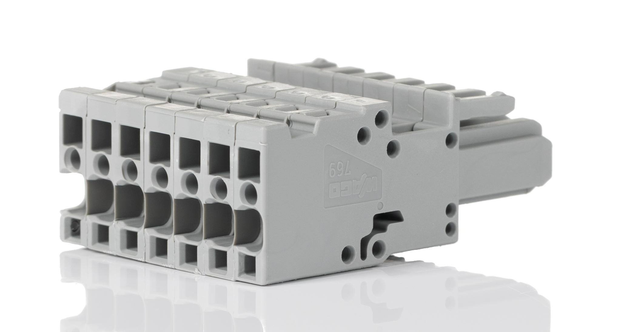 This is Female Plug 769 Series manufactured by Wago. The manufacturer part number is 769-107. The product 769, is a highly preferred choice for users. It has a decent grey colour. It is a type of female plug, 7 pole accessory. With 4mm² contact dimensions . The product is highly suitable for x-com system 769 series.