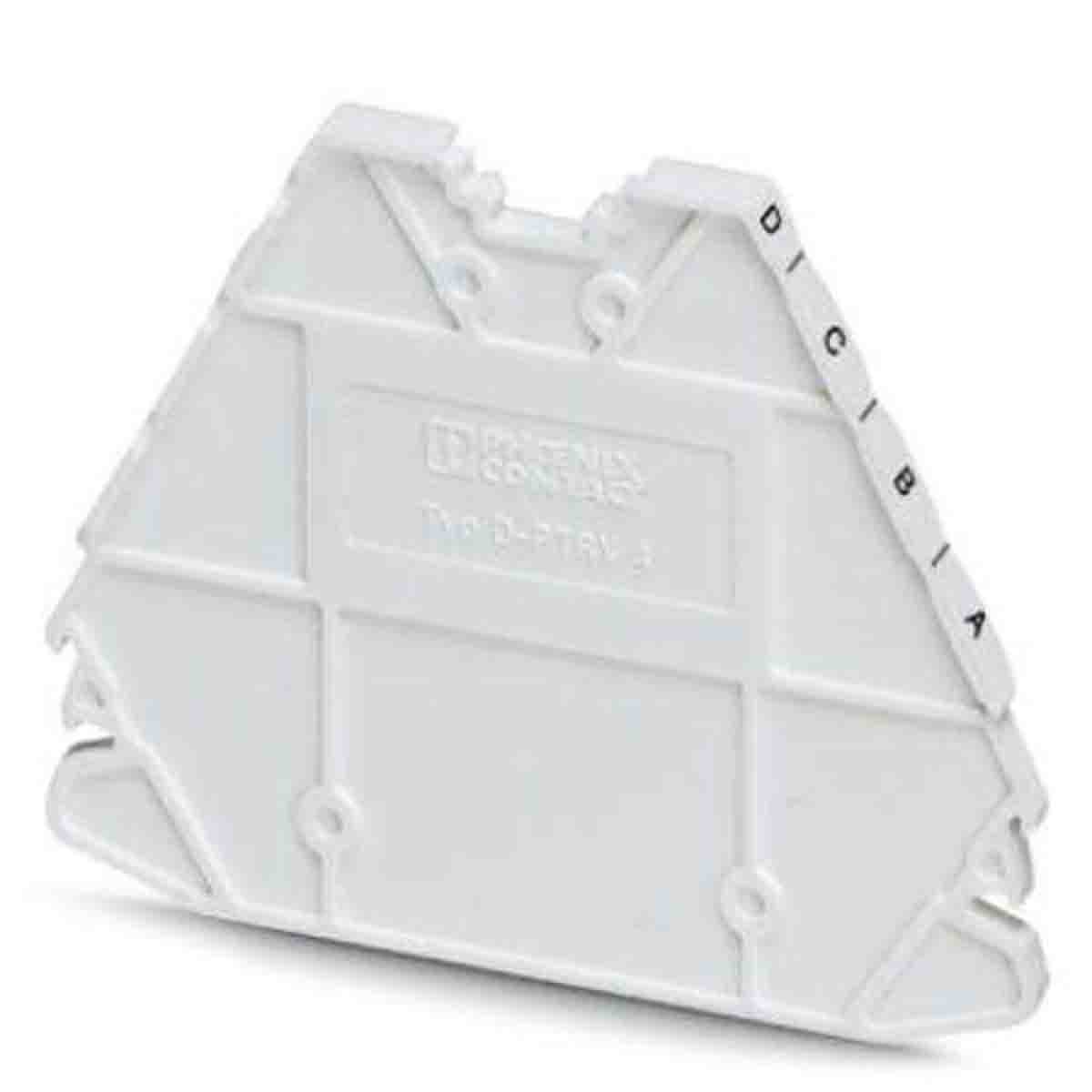 This is D-PTRV 4 WH End Cover for Terminal Block manufactured by Phoenix Contact. The manufacturer part number is 3270239. The product is highly suitable for din rail terminal blocks. The product d-ptrv 4 wh, is a highly preferred choice for users. It is a type of end cover accessory.