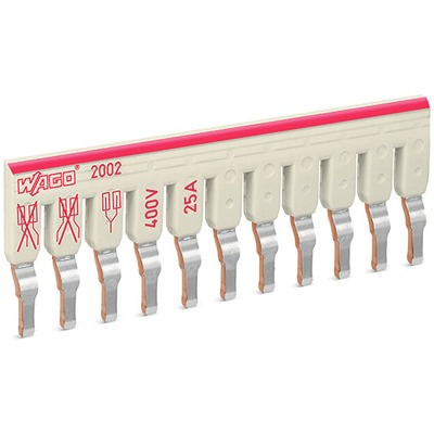 This is WAGO TOPJOB S Series Staggered Jumper for Use with DIN Rail Terminal Block 25A manufactured by Wago. The manufacturer part number is 2002-481. The product is highly suitable for din rail terminal block. The product topjob s, is a highly preferred choice for users. The product has a current rating of 25a. It is a type of staggered jumper accessory. The product is available in plug-in mount configuration.