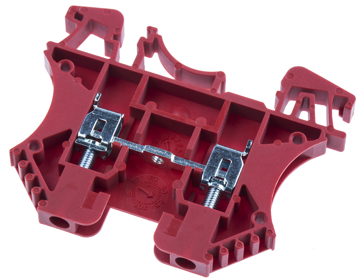 This is 800 V Din Rail Terminal Screw Clamp Termination manufactured by RS Pro. The manufacturer part number is 913-1201. Features 22 → 10awg - American Wire Gauge. The product has a current rating of 24a. Moreover, the product has a nominal 800 v voltage rating. It has a decent red colour. It allows screw termination method. The cross section area of the cable includes 2.5mm².