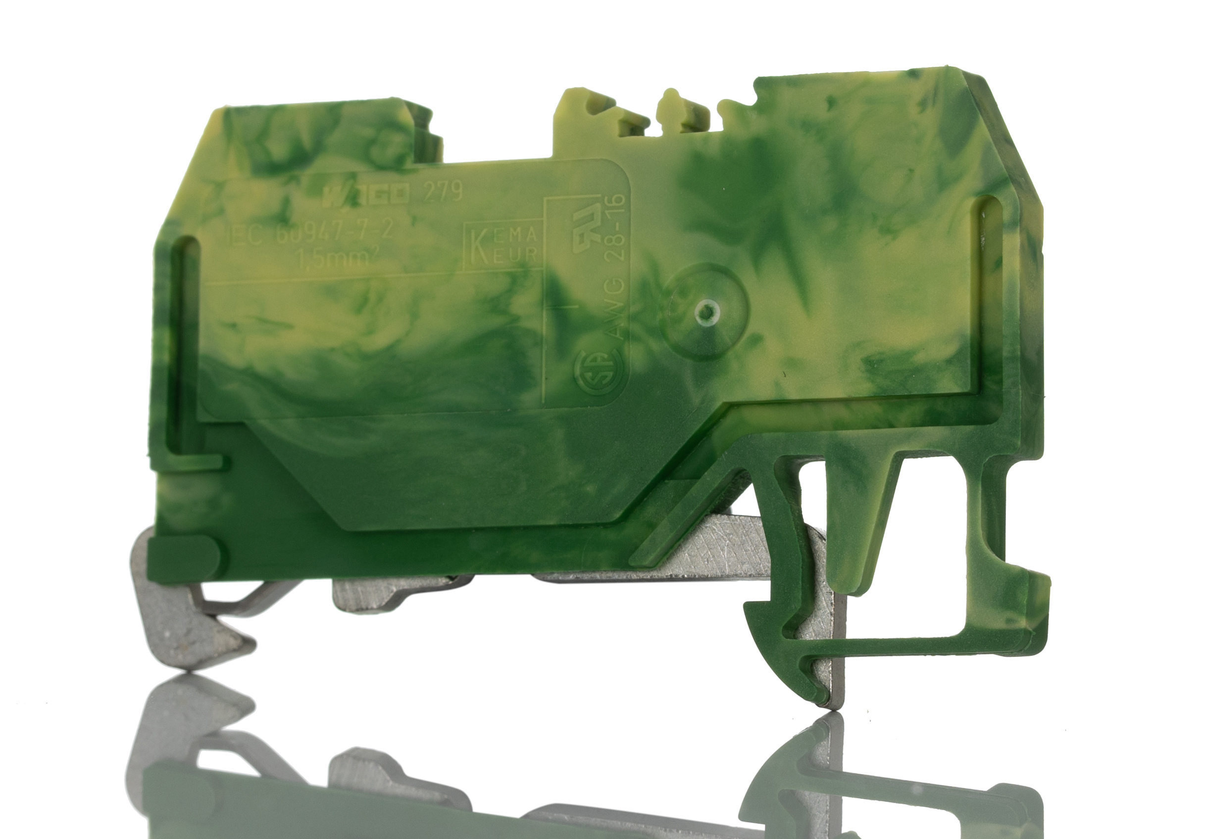 This is 279 Series Earth Terminal Block Clamp Termination manufactured by Wago. The manufacturer part number is 279-907. The product carries single levels. It is fused no . The product 279, is a highly preferred choice for users. It has a decent green/yellow colour. Features 28 → 16awg - American Wire Gauge. It allows cage clamp termination method. The cross section area of the cable includes 1.5mm².