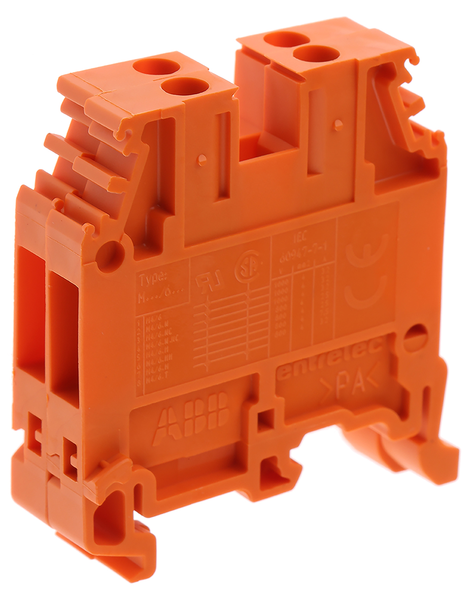 This is SNA Series 1 kV ac Standard Din Rail Terminal Screw Termination manufactured by Entrelec. The manufacturer part number is 1SNA105002R2000. The product carries single levels. The product has a current rating of 32a. Moreover, the product has a nominal 1 kv ac voltage rating. The product sna, is a highly preferred choice for users. It has a decent orange colour. It allows screw termination method. Whereas, the minimum operating temperature of the product is -5°c. Moreover, the product is 6mm. The cross section area of the cable includes 4mm². It has a maximum operating temperature of +40°c.