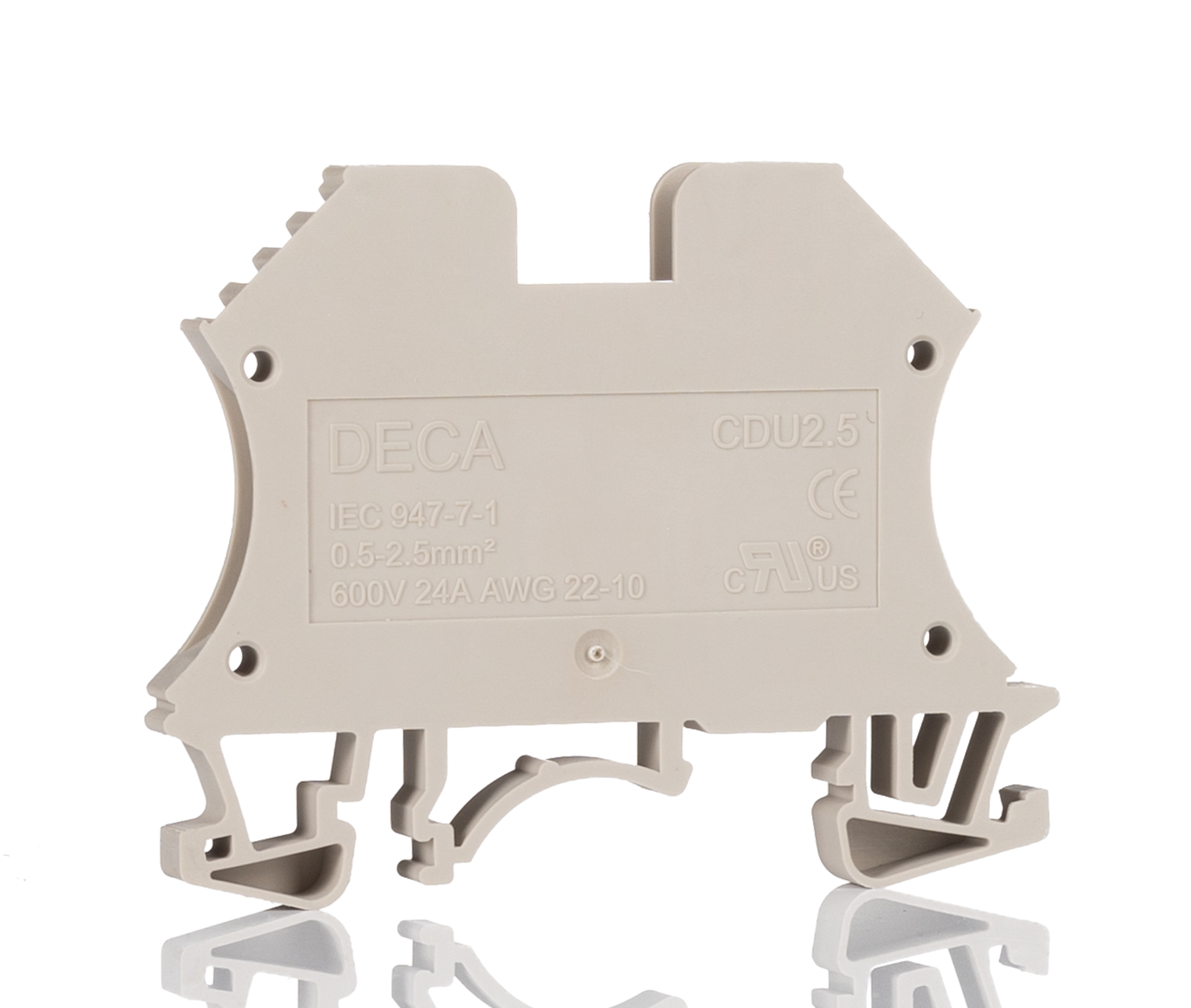 This is 800 V Din Rail Terminal Screw Clamp Termination manufactured by RS Pro. The manufacturer part number is 913-1229. Features 22 → 10awg - American Wire Gauge. The product has a current rating of 24a. It is fused no . Moreover, the product has a nominal 800 v voltage rating. It has a decent beige colour. It allows screw termination method. The cross section area of the cable includes 2.5mm².