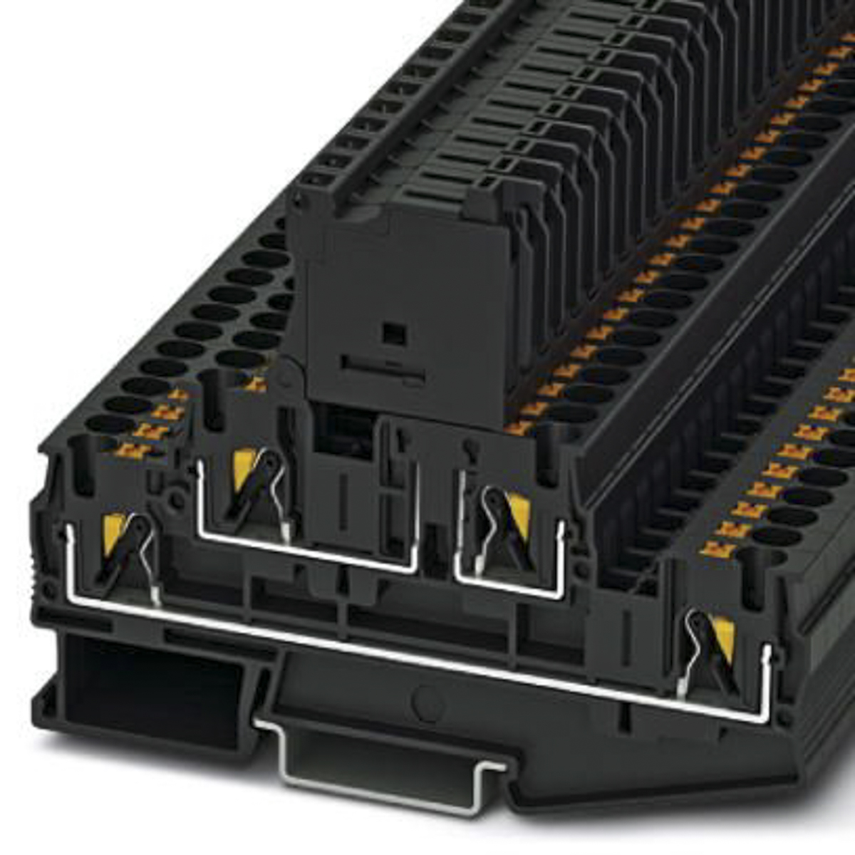 This is Non-Fused Terminal Block 4 Way/Pole 24 → 10 AWG DIN Rail 500 V manufactured by Phoenix Contact. The manufacturer part number is 3211892. The product has a current rating of 6.3a. Features 24 → 10awg - American Wire Gauge. It is fused no . Moreover, the product has a nominal 500 v voltage rating. The product pttb 4-hesiled 250 (5x20), is a highly preferred choice for users. It has a model number pttb 4-hesiled 250 (5x20). The cross section area of the cable includes 0.2 → 4 mm², 0.2 → 6 mm², 0.25 → 4 mm², 0.25 → 4mm². It is assigned with possible HTSUS value of 8536.90.4000. Moreover, it has push in terminal style. It is designed from highly reliable polyamide (pa), nylon insulating material. It comes in disconnect, feed through configuration. The product carries possible position value of 4. A 0.2-6mm² of wire gauge. It carries ul94 v-0 of material flammability rating. It is shipped in bulk package . It has a stripping length of 10mm ~ 12mm. An IEC current of 28 a. While 10-24 awg is its range or wire gauge. While 600v is the typical voltage of the product. It has a long 9 weeks standard lead time. The built-in terminal is 6.2mm wide. Disconnect type - fuse, lever. The nominal voltage of the product is 500v. The splendid features of the product include diode. It has a classic black colour. The product clipline pt, is a highly preferred choice for users. It integrates a 5mm x 20mm fuse type. The typical current includes 5 a. The product carries 2 levels. The product is designated with the ear99 code number.