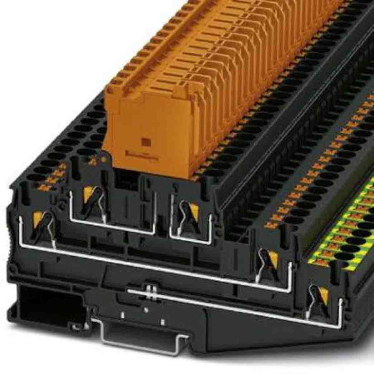This is PT 500 V Disconnect Terminal Block Push In Termination manufactured by Phoenix Contact. The manufacturer part number is 3002606. Features 24 → 10awg - American Wire Gauge. The product has a current rating of 30a. Moreover, the product has a nominal 500 v voltage rating. The product pt, is a highly preferred choice for users. It has a decent black colour. It has a model number pt 4-pe/l/hedi. It allows push in termination method.