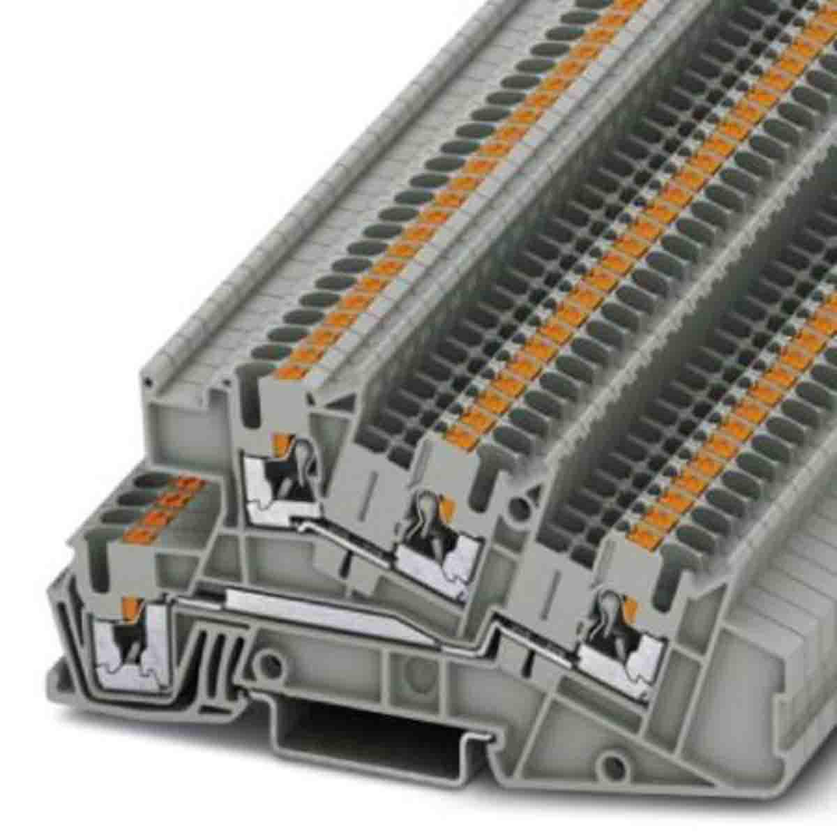 This is 4 Way Push In 26 to 12 AWG manufactured by Phoenix Contact. The manufacturer part number is 3213939. Features 26 → 12awg - American Wire Gauge. It has a decent grey colour. It has a model number pti 2,5-l/l kan. It allows push in termination method. The cross section area of the cable includes 0.14 → 4mm².