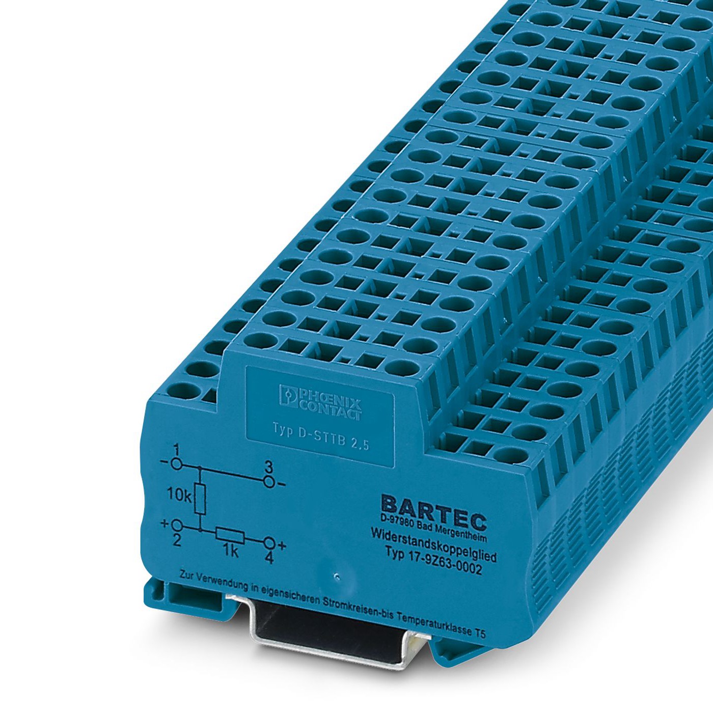 This is Blue STTB 2.5-R10K/O-U BU Component Terminal Block 12 → 28 AWG 0.08 - 4mm² 500 V manufactured by Phoenix Contact. The manufacturer part number is 3035454. The product has a current rating of 22a. Features 12 → 28awg - American Wire Gauge. It is fused no . Moreover, the product has a nominal 500 v voltage rating. The product sttb 2.5-r10k/o-u bu, is a highly preferred choice for users. It has a decent blue colour. It has a model number sttb 2,5-r10k/o-u bu. The cross section area of the cable includes 0.08 → 4mm².