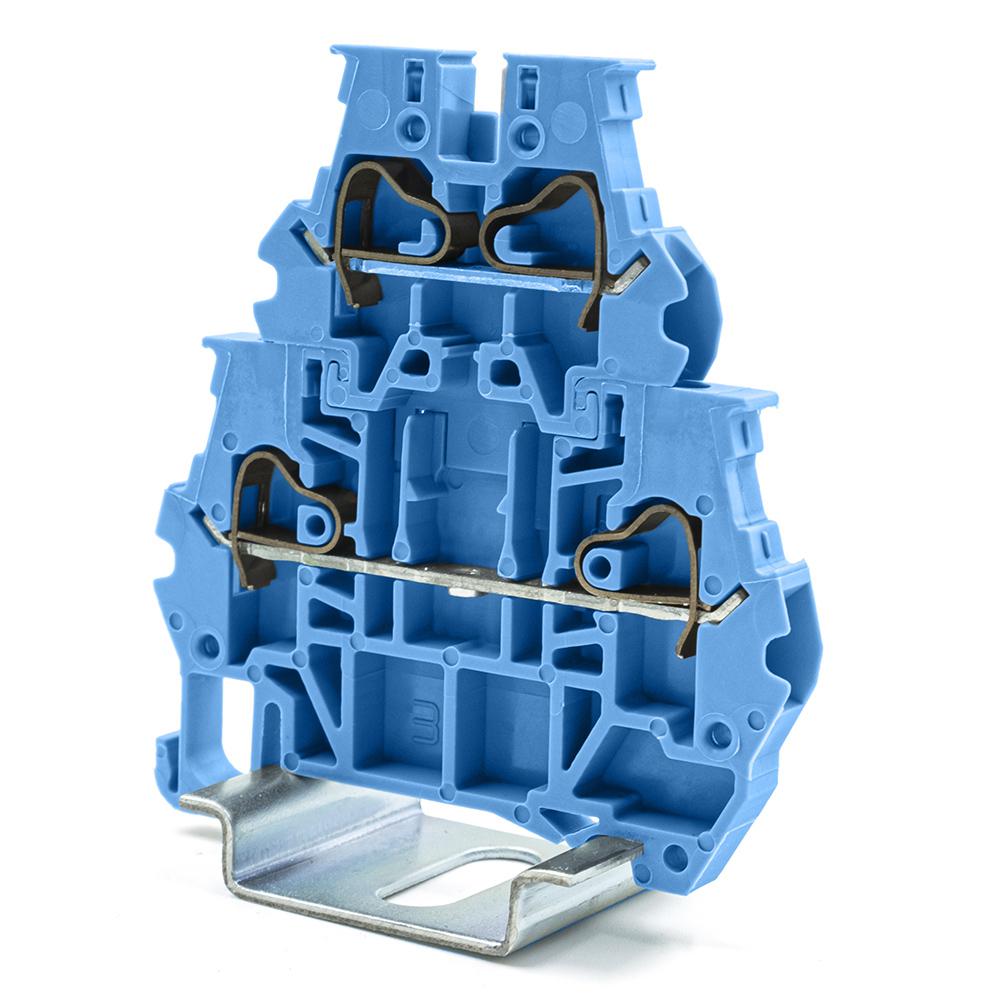 This is Blue Feed Through Terminal Block 4mm² 2-Level Spring Termination manufactured by RS PRO. The manufacturer part number is 262-4335. The product carries 2 levels. The product has a current rating of 32a. Moreover, the product has a nominal 1 kv voltage rating. It has a decent blue colour. Features 24 → 10awg - American Wire Gauge. It allows spring termination method. The cross section area of the cable includes 4mm².