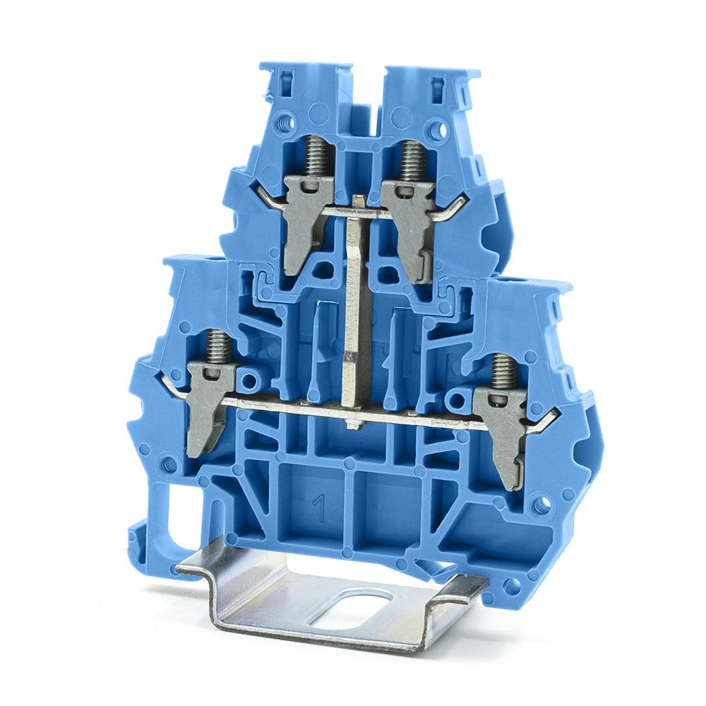 This is Blue Feed Through Terminal Block 4mm² 2-Level Clamp Termination manufactured by RS PRO. The manufacturer part number is 262-4375. The product carries 2 levels. The product has a current rating of 32a. Moreover, the product has a nominal 1 kv voltage rating. It has a decent blue colour. Features 24 → 10awg - American Wire Gauge. It allows clamp termination method. The cross section area of the cable includes 4mm².
