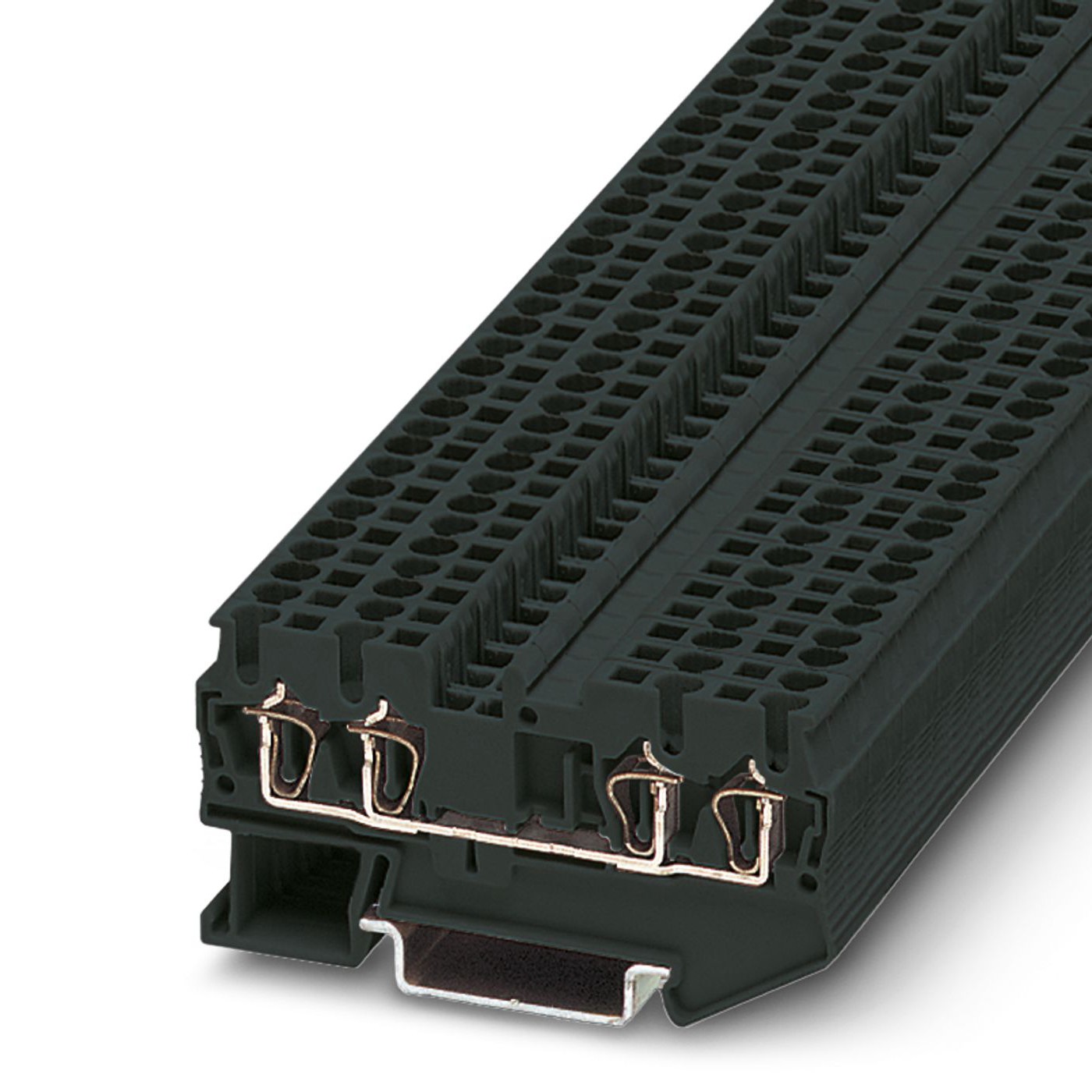 This is ST 2.5-QUATTRO-BE BK Series Black Component Terminal Block 0.08mm² Single-Level Spring Cage manufactured by Phoenix Contact. The manufacturer part number is 3028924. The product carries single levels. Moreover, the product has a nominal 800 v voltage rating. The product st 2.5-quattro-be bk, is a highly preferred choice for users. It has a decent black colour. Features 12 → 28awg - American Wire Gauge. It allows spring cage termination method. The cross section area of the cable includes 0.08mm².