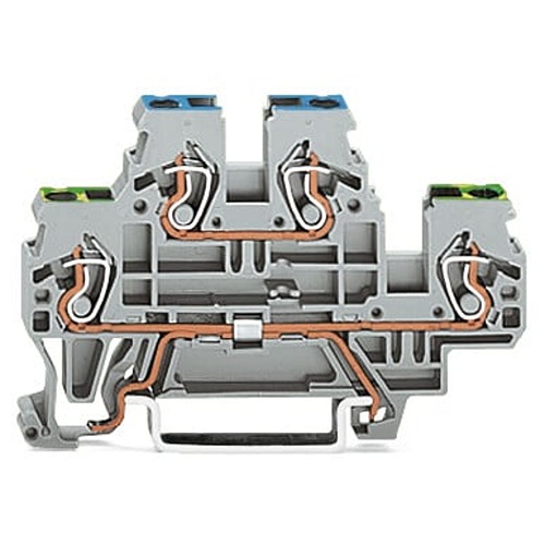 This is 870 Series Terminal Block 2.5mm² 2-Level Cage Clamp Termination manufactured by WAGO. The manufacturer part number is 870-517. The product carries 2 levels. It is fused no . The product 870, is a highly preferred choice for users. It has a decent grey colour. Features 12awg - American Wire Gauge. It allows cage clamp termination method. The cross section area of the cable includes 2.5mm².