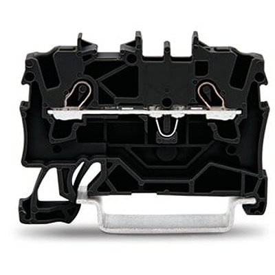 The WAGO Terminal block is a two conductor through terminal block. It is available in black colour with operating tool type actuation. This terminal block insulation is made from polyamide material and it has push in cage clamp connection technology. RoHS compliant 0.074 MJ fire load DIN 35 rail mounting V0 flammability class per UL94