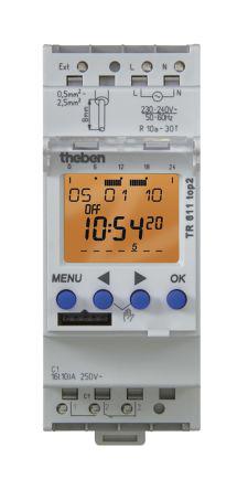 This is 1 Channel Digital DIN Rail Switch Measures Hours 230 → 240 V ac manufactured by Theben / Timeguard. The manufacturer part number is TR 611 top2. It measures in hours units . Its segment length is approximately 1 s . In addition, the height is 90.1mm. The product comes in 69.2mm depth. Its battery life is about 10yr . It is supplied with 1 channels. Features 230 → 240 v ac supply voltage. It includes 84 memory spaces . The contact is equipped with spdt configuration. It comes in digital configuration.