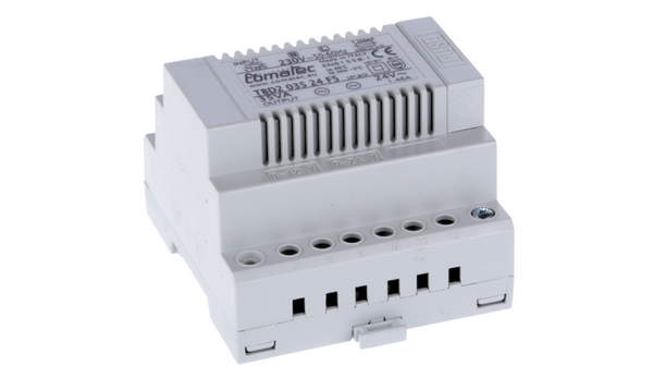 This is 35VA DIN Rail Transformer 230V Primary 24V Secondary manufactured by Comatec. The manufacturer part number is TBD2/035.24/F5. It has about 230v primary voltage rating . Feature 35va of power rating. In addition, it has a secondary 24v voltage rating . The product is available in din rail mount configuration.