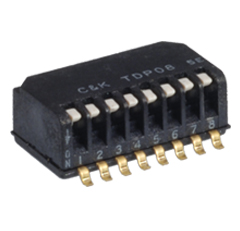 This is manufactured by C&K. The manufacturer part number is TDP08H1SBD1R. Whereas, the minimum operating temperature of the product is -40°c. The product is available in surface mount configuration. Moreover, the product has a nominal 24v dc voltage rating. The rated contact current is 25 ma @ 24 v dc. Its package is of dip style . The product has -40 → +85°c of operating temperature range. In addition, the product has 300v ac dielectric strength . The contact is equipped with spst configuration. The product carries piano, raised actuator. It has a maximum operating temperature of +85°c. The product carries possible position value of 8. The product is made from sturdy copper alloy materials. It has typical 17 weeks of manufacturer standard lead time. Washable - no. It features dip switch spst 8 position surface mount, right angle piano actuator 25ma 24vdc. The product offers long-lasting services of 1,000 cycles. Moreover, it has gull wing terminal style. The product has -40°c ~ 85°c operating temperature range. It is 0.161" (4.10mm) high above board. The product also provide mechanical stability with 1,000 cycles. Features a raised actuator level. The c&k's product offers user-desired applications. Moreover, the product has a nominal 24vdc voltage rating. Furthermore, the product is galvanized with excellent gold contact finishing. The product's body is nicely designed from polyphenylene sulfide (pps), glass filled materials. It has an integral spst circuit. Additionally, the product's output is 25ma. The product is available in surface mount, right angle configuration. The product tdp, is a highly preferred choice for users. Its accurate length is 0.444" (11.28mm). In addition, cut tape (ct) is the available packaging type of the product. The product carries piano actuator. Moreover, the product is 0.050" (1.27mm), half.