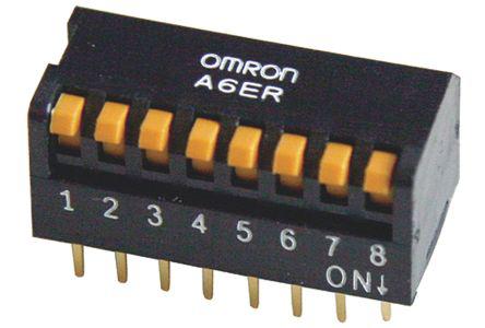 This is 10 Way Through Hole DIP Switch 10P Piano Actuator manufactured by Omron. The manufacturer part number is A6ER-0101. Priced to Clear Options - yes. Whereas, the minimum operating temperature of the product is -20°c. The product is available in through hole configuration. The product has -20 → +70°c of operating temperature range. The rated contact current is 25 ma@ 24 v dc. Its package is of dip style . In addition, the product has 500v ac dielectric strength . The contact is equipped with 10p configuration. The product carries piano actuator. The product also provide mechanical stability with 1000operations. It has a maximum operating temperature of +70°c. The product carries possible position value of 10.