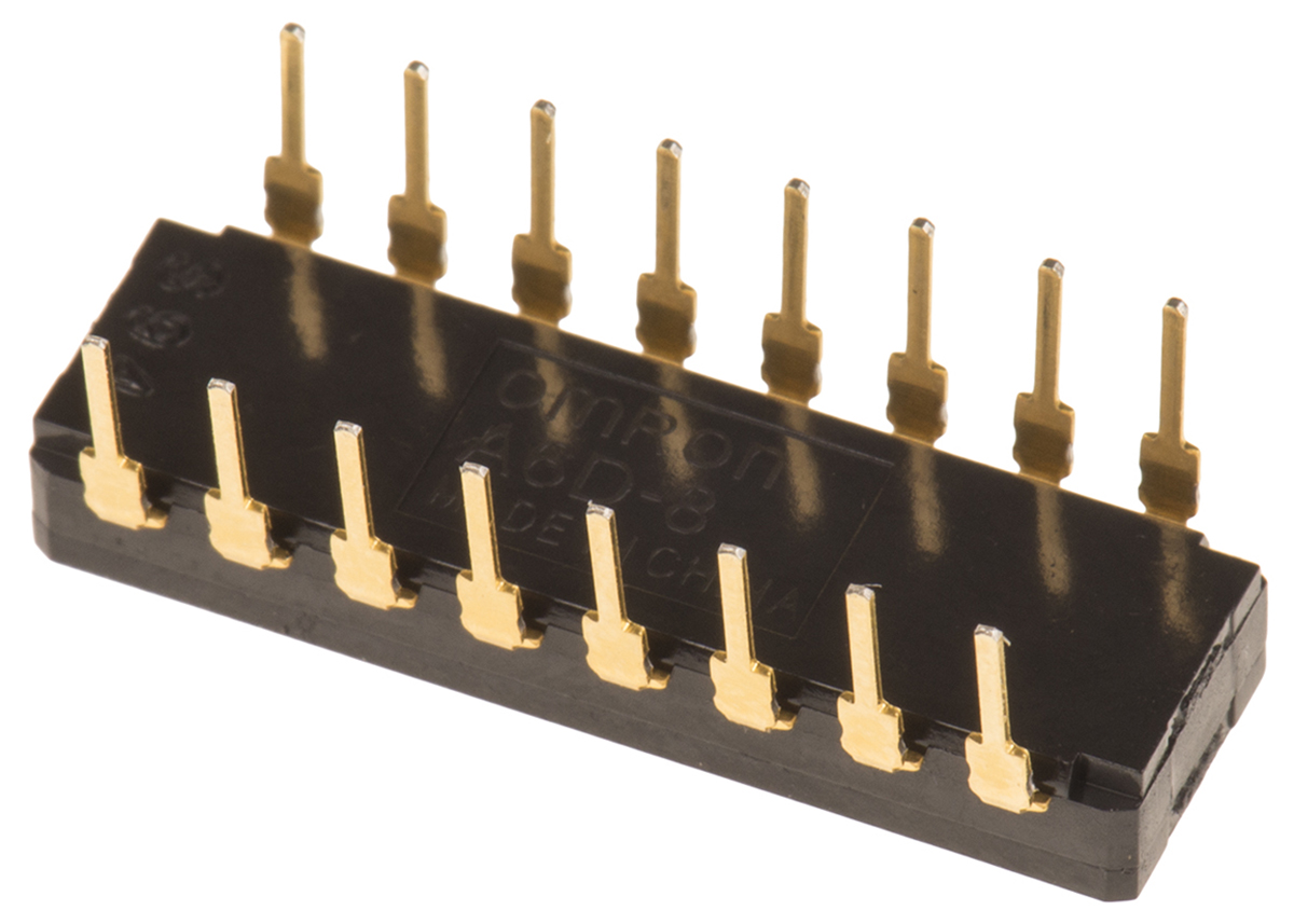 This is 8 Way Through Hole DIP Switch 8P manufactured by Omron. The manufacturer part number is A6D-8100. The product is available in through hole configuration. The product has -20 → +70°c of operating temperature range. The rated contact current is 100 ma@ 5 v dc. Its package is of dip style . Whereas, the minimum operating temperature of the product is -20°c. In addition, the product has 500v ac dielectric strength . The contact is equipped with 8p configuration. The product carries slide actuator. The product also provide mechanical stability with 5000operations. It has a maximum operating temperature of +70°c. The product carries possible position value of 8. The product is made from sturdy gold plated materials.