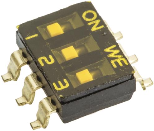 This is 3 Way Surface Mount DIP Switch 3P Flat Actuator manufactured by Wurth Elektronik. The manufacturer part number is 418121160803. Whereas, the minimum operating temperature of the product is -40°c. The product is available in surface mount configuration. Moreover, the product has a nominal 24v dc voltage rating. The rated contact current is 25 ma@ 24 v dc. Its package is of dip style . The product has -40 → +85°c of operating temperature range. In addition, the product has 500v ac dielectric strength . The contact is equipped with 3p configuration. The product carries flat actuator. The product also provide mechanical stability with 5000cycles. It has a maximum operating temperature of +85°c. The product carries possible position value of 3. The product is made from sturdy copper alloy materials.