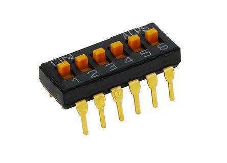 This is 6 Way Through Hole DIP Switch 6P6T-NC Top Slide Actuator manufactured by Alps Electric. The manufacturer part number is SSGM160100. Whereas, the minimum operating temperature of the product is -40°c. The product is available in through hole configuration. Moreover, the product has a nominal 24 v dc, 50 v dc voltage rating. The rated contact current is 25 (opening and closing) ma, 100 (when energized) ma. Its package is of dip style . The product has -40 → +85°c of operating temperature range. The contact is equipped with 6p6t-nc configuration. The product carries top slide actuator. The product also provide mechanical stability with 3000cycles. It has a maximum operating temperature of +85°c. The product carries possible position value of 6. The product is made from sturdy gold materials.