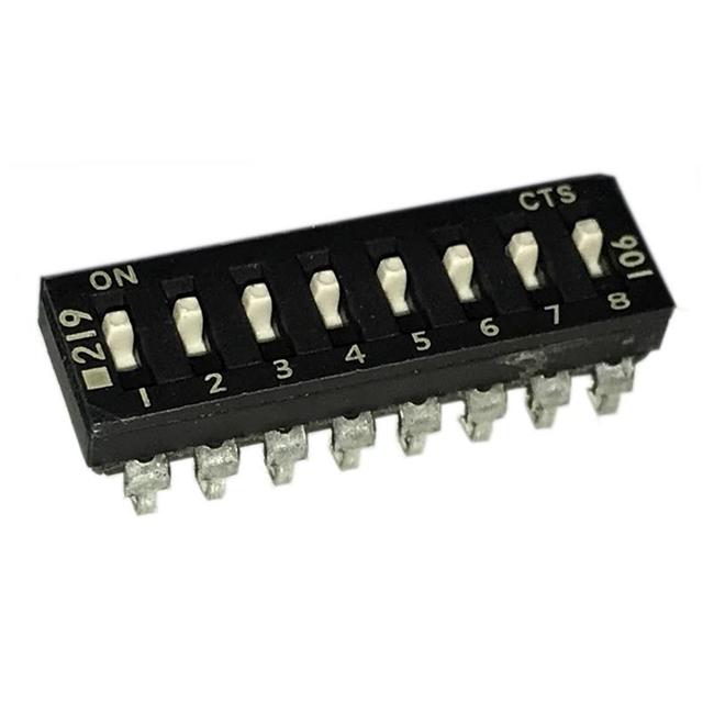 This is manufactured by CTS Electrocomponents. The manufacturer part number is 219-8ESJ. Washable - no. It is assigned with possible HTSUS value of 8536.50.9065. The product is rohs3 compliant. The product offers long-lasting services of 2,000 cycles. Moreover, it has j lead terminal style. The product has -55°c ~ 85°c operating temperature range. It is 0.224" (5.70mm) high above board. The product carries possible position value of 8. Features a raised actuator level. In addition, it is reach unaffected. The cts electrocomponents's product offers user-desired applications. Moreover, the product has a nominal 20vdc voltage rating. Furthermore, the product is galvanized with excellent gold contact finishing. Its typical moisture sensitivity level is 1 (unlimited). Its accurate length is 0.858" (21.80mm). It has an integral spst circuit. It has a long 8 weeks standard lead time. Additionally, the product's output is 100ma. The splendid features of the product include epoxy sealed terminals. The product is available in surface mount configuration. The product 219, is a highly preferred choice for users. In addition, tube is the available packaging type of the product. The product carries slide (standard) actuator. Moreover, the product is 0.100" (2.54mm), full. The product is made from sturdy beryllium copper materials. The product is designated with the ear99 code number.