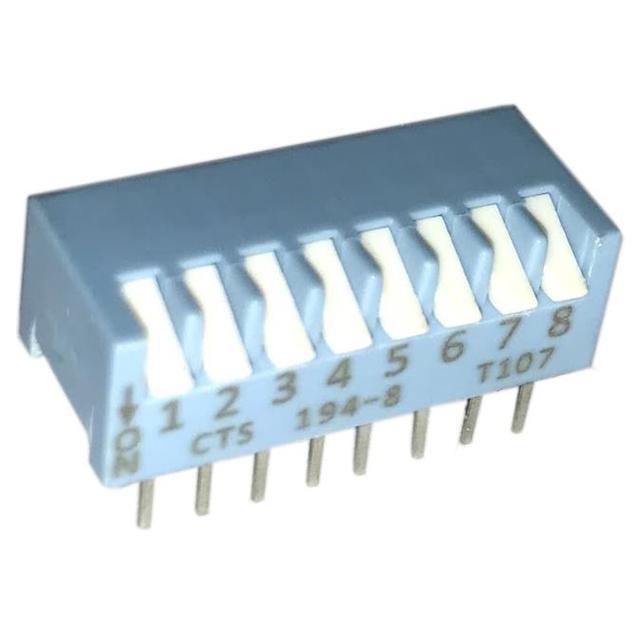 This is manufactured by CTS Electrocomponents. The manufacturer part number is 194-8MSN. Washable - no. It is assigned with possible HTSUS value of 8536.50.9065. The product is rohs3 compliant. The product offers long-lasting services of 7,000 cycles. Moreover, it has pc pin terminal style. The product has -40°c ~ 85°c operating temperature range. It is 0.311" (7.90mm) high above board. The product carries possible position value of 8. Features a raised actuator level. In addition, it is reach unaffected. The cts electrocomponents's product offers user-desired applications. Moreover, the product has a nominal 24vdc voltage rating. Furthermore, the product is galvanized with excellent gold contact finishing. Its typical moisture sensitivity level is 1 (unlimited). Its accurate length is 0.886" (22.50mm). It has an integral spst circuit. It has a long 8 weeks standard lead time. Additionally, the product's output is 50ma. The splendid features of the product include epoxy sealed terminals. The product is available in through hole, right angle configuration. The product 194, is a highly preferred choice for users. The product's body is nicely designed from plastic materials. In addition, tube is the available packaging type of the product. The product carries piano actuator. Moreover, the product is 0.100" (2.54mm), full. The product is designated with the ear99 code number.
