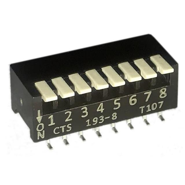 This is manufactured by CTS Electrocomponents. The manufacturer part number is 193-8MSRN. Washable - no. It is assigned with possible HTSUS value of 8536.50.9065. The product is rohs3 compliant. The product offers long-lasting services of 7,000 cycles. Moreover, it has gull wing terminal style. The product has -40°c ~ 85°c operating temperature range. It is 0.359" (9.12mm) high above board. The product carries possible position value of 8. Features a raised actuator level. In addition, it is reach unaffected. The cts electrocomponents's product offers user-desired applications. Moreover, the product has a nominal 24vdc voltage rating. Furthermore, the product is galvanized with excellent gold contact finishing. Its typical moisture sensitivity level is 1 (unlimited). Its accurate length is 0.886" (22.50mm). It has an integral spst circuit. It has a long 8 weeks standard lead time. Additionally, the product's output is 50ma. The splendid features of the product include epoxy sealed terminals. The product is available in surface mount, right angle configuration. The product 193, is a highly preferred choice for users. The product's body is nicely designed from plastic materials. In addition, tape & reel (tr) is the available packaging type of the product. The product carries piano actuator. Moreover, the product is 0.100" (2.54mm), full. The product is designated with the ear99 code number.