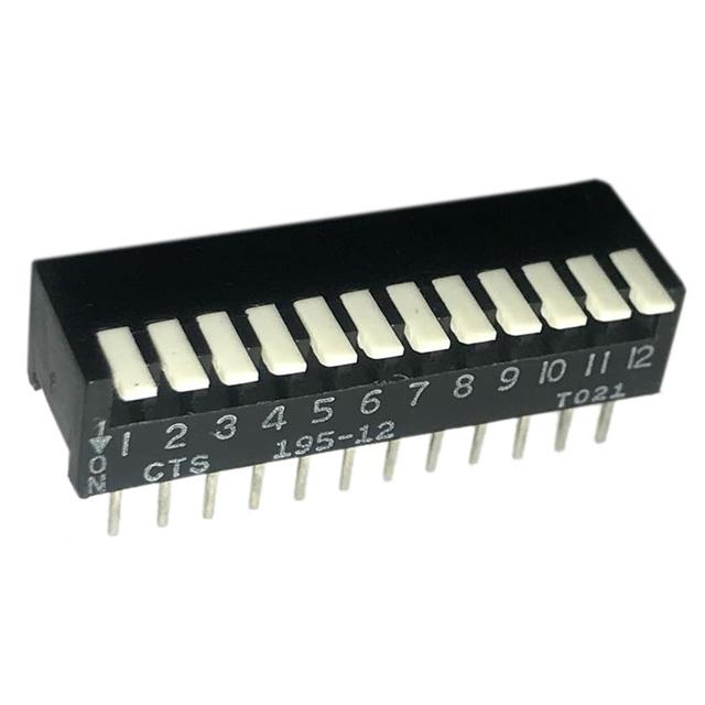 This is manufactured by CTS Electrocomponents. The manufacturer part number is 195-12MS. Washable - no. It is assigned with possible HTSUS value of 8536.50.9065. The product is rohs3 compliant. The product offers long-lasting services of 2,000 cycles. Moreover, it has pc pin terminal style. The product has -40°c ~ 85°c operating temperature range. It is 0.311" (7.90mm) high above board. The product carries possible position value of 12. Features a raised actuator level. In addition, it is reach unaffected. The cts electrocomponents's product offers user-desired applications. Moreover, the product has a nominal 24vdc voltage rating. Furthermore, the product is galvanized with excellent tin contact finishing. Its typical moisture sensitivity level is 1 (unlimited). Its accurate length is 1.286" (32.66mm). It has an integral spst circuit. It has a long 12 weeks standard lead time. Additionally, the product's output is 50ma. The splendid features of the product include epoxy sealed terminals. The product is available in through hole, right angle configuration. The product 195, is a highly preferred choice for users. The product's body is nicely designed from plastic materials. In addition, tube is the available packaging type of the product. The product carries piano actuator. Moreover, the product is 0.100" (2.54mm), full. The product is designated with the ear99 code number.