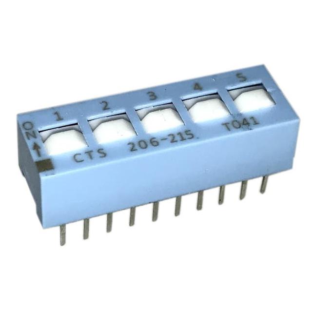 This is manufactured by CTS Electrocomponents. The manufacturer part number is 206-215. Washable - no. It is assigned with possible HTSUS value of 8536.50.9065. The product is rohs3 compliant. The product offers long-lasting services of 10,000 cycles. Moreover, it has pc pin terminal style. The product has -55°c ~ 85°c operating temperature range. It is 0.334" (8.48mm) high above board. The product carries possible position value of 5. Features a raised actuator level. Moreover, the product has a nominal 24vdc voltage rating. In addition, it is reach unaffected. It is shipped in tube package . Furthermore, the product is galvanized with excellent gold contact finishing. Its typical moisture sensitivity level is not applicable. Its accurate length is 1.086" (27.58mm). It has an integral dpst circuit. It has a long 12 weeks standard lead time. Additionally, the product's output is 50ma. The product is available in through hole configuration. The product 206, is a highly preferred choice for users. The product's body is nicely designed from plastic materials. The product carries slide (standard) actuator. Moreover, the product is 0.100" (2.54mm), full. The product is designated with the ear99 code number.