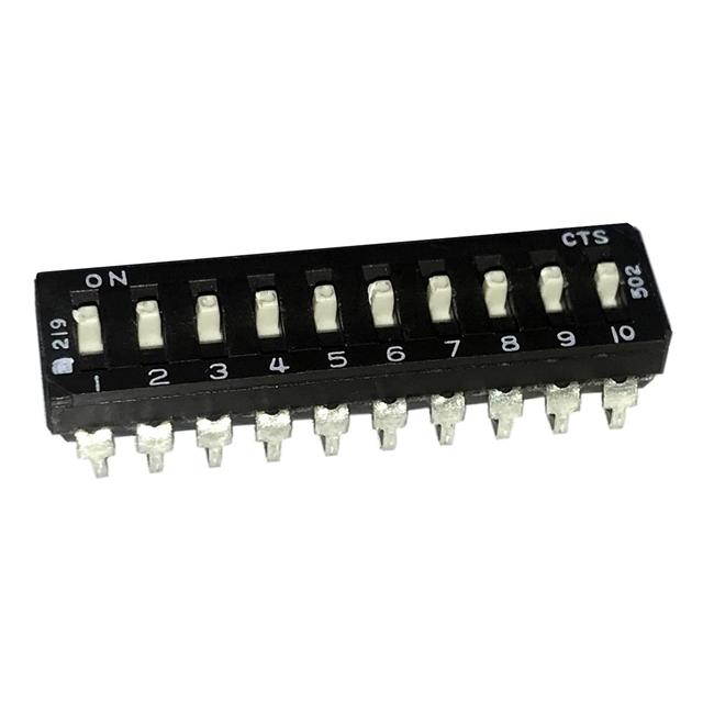 This is manufactured by CTS Electrocomponents. The manufacturer part number is 219-10ESJR. Washable - no. It is assigned with possible HTSUS value of 8536.50.9065. The product is rohs3 compliant. The product offers long-lasting services of 2,000 cycles. Moreover, it has j lead terminal style. The product has -55°c ~ 85°c operating temperature range. It is 0.224" (5.70mm) high above board. The product carries possible position value of 10. Features a raised actuator level. In addition, it is reach unaffected. The cts electrocomponents's product offers user-desired applications. Moreover, the product has a nominal 20vdc voltage rating. Furthermore, the product is galvanized with excellent gold contact finishing. Its typical moisture sensitivity level is 1 (unlimited). Its accurate length is 1.058" (26.87mm). It has an integral spst circuit. It has a long 8 weeks standard lead time. Additionally, the product's output is 100ma. The splendid features of the product include epoxy sealed terminals. The product is available in surface mount configuration. The product 219, is a highly preferred choice for users. In addition, tape & reel (tr) is the available packaging type of the product. The product carries slide (standard) actuator. Moreover, the product is 0.100" (2.54mm), full. The product is made from sturdy beryllium copper materials. The product is designated with the ear99 code number.