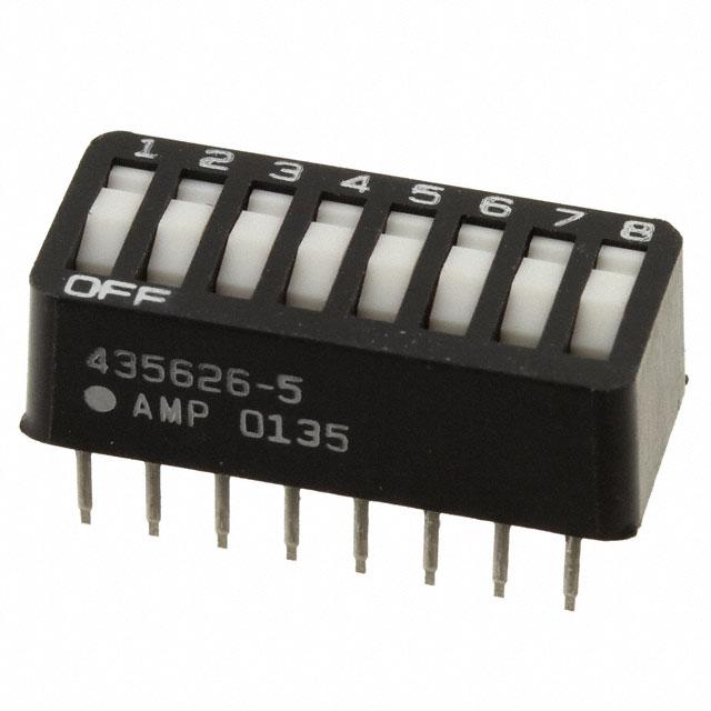 This is manufactured by TE Connectivity ALCOSWITCH Switches. The manufacturer part number is 435626-5. Washable - no. It is assigned with possible HTSUS value of 8536.50.9065. The product is rohs non-compliant. Moreover, it has pc pin terminal style. The product has -55°c ~ 105°c operating temperature range. It is 0.290" (7.37mm) high above board. The product carries possible position value of 8. Features a flush, recessed actuator level. In addition, it is vendor undefined. The te connectivity alcoswitch switches's product offers user-desired applications. Moreover, the product has a nominal 24vdc voltage rating. Furthermore, the product is galvanized with excellent gold contact finishing. Its typical moisture sensitivity level is not applicable. It has an integral spst circuit. Additionally, the product's output is 25ma. The product is available in through hole configuration. The product 7000, is a highly preferred choice for users. In addition, tube is the available packaging type of the product. The product carries rocker actuator. Moreover, the product is 0.100" (2.54mm), full. The product is designated with the ear99 code number. Moreover, it corresponds to 435626, a base product number of the product. The product is made from sturdy copper alloy materials.