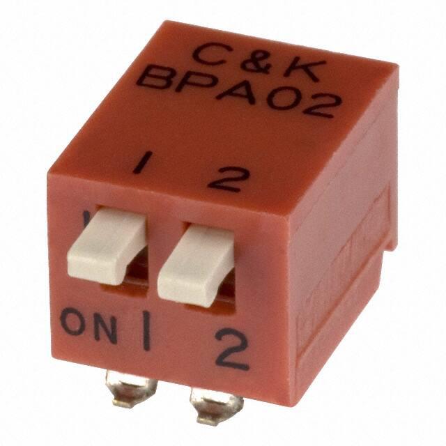 This is manufactured by C&K. The manufacturer part number is BPA02SK. Washable - yes. It features dip switch spst 2 position surface mount, right angle piano actuator 100ma 5vdc. The product offers long-lasting services of 1,000 cycles. Moreover, it has gull wing terminal style. The product has -20°c ~ 85°c operating temperature range. It is 0.274" (6.95mm) high above board. The product also provide mechanical stability with 1,000 cycles. The product carries possible position value of 2. Features a raised actuator level. The c&k's product offers user-desired applications. Moreover, the product has a nominal 5vdc voltage rating. Furthermore, the product is galvanized with excellent tin contact finishing. The product's body is nicely designed from polyphenylene sulfide (pps) materials. It has an integral spst circuit. Additionally, the product's output is 100ma. The product is available in surface mount, right angle configuration. The product bpa, is a highly preferred choice for users. Its accurate length is 0.276" (7.00mm). In addition, tube is the available packaging type of the product. The product carries piano actuator. Moreover, the product is 0.100" (2.54mm), full. The product is made from sturdy phosphor bronze materials.