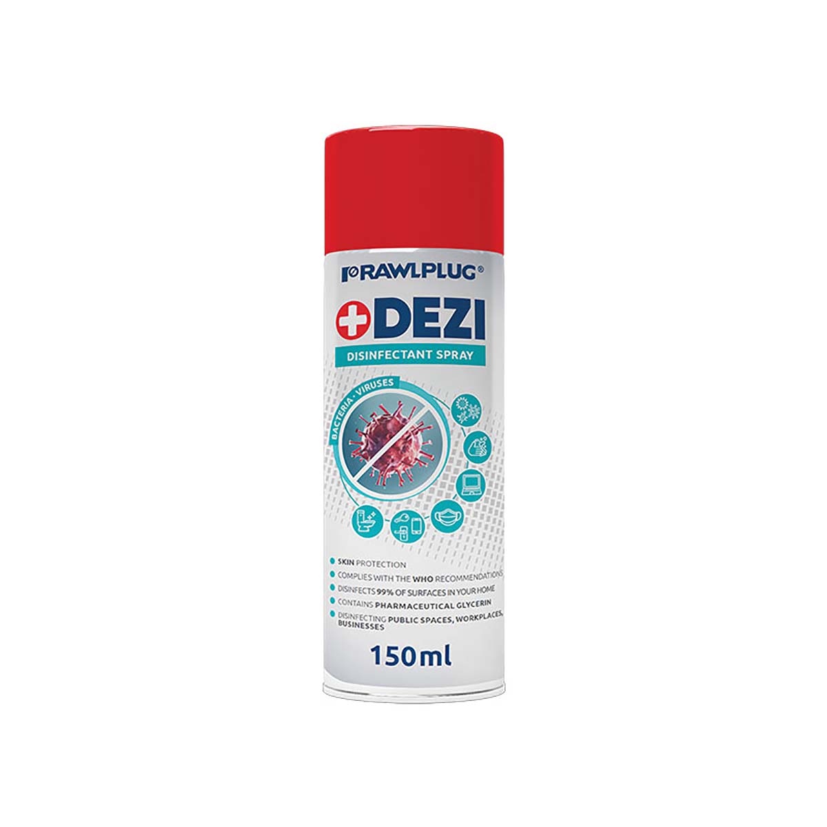 This is 400 ml Bottle Disinfectant & Sanitiser manufactured by RawlPlug. The manufacturer part number is R-DEZI-150-EN. It is assigned with a trade name of rawlplug. Its base is made up of alcohol material . The package is a sort of bottle. Its package size is approximately 150ml .