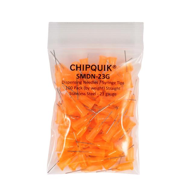 This is manufactured by Chip Quik Inc.. The manufacturer part number is SMDN-23G. It is assigned with possible HTSUS value of 7326.90.8688. The product is rohs3 compliant. The built-in exquisite tip is a needle tip tip. The product consists of 100 pieces. It comes in dispenser needle, tip configuration. In addition, it is reach unaffected. It is shipped in bulk package . Its typical moisture sensitivity level is not applicable. It has a long 4 weeks standard lead time. The product is 23 gauge. Moreover, it corresponds to smdn, a base product number of the product. The product is designated with the ear99 code number.