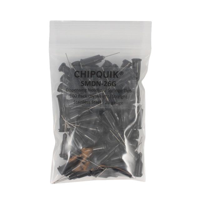 This is manufactured by Chip Quik Inc.. The manufacturer part number is SMDN-26G. It is assigned with possible HTSUS value of 7326.90.8688. The product is rohs3 compliant. The built-in exquisite tip is a needle tip tip. The product consists of 100 pieces. It comes in dispenser needle, tip configuration. In addition, it is reach unaffected. It is shipped in bulk package . Its typical moisture sensitivity level is not applicable. It has a long 4 weeks standard lead time. The product is 26 gauge. Moreover, it corresponds to smdn, a base product number of the product. The product is designated with the ear99 code number.