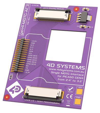 This is MOTG AC3 Interface Board with 1 MOTG Slot for gen4 LCD Displays manufactured by 4D Systems. The manufacturer part number is MOTG-AC3. This kit is known as motg ac3 interface board with 1 motg slot for gen4 lcd displays, consists of highly versatile and user-desired tools. This versatile kit contents include motg ac3 interface board components. The product motg, is a highly preferred choice for users. It is a type of i2c, spi, uart interface. The product is highly suitable for gen4 lcd display modules.