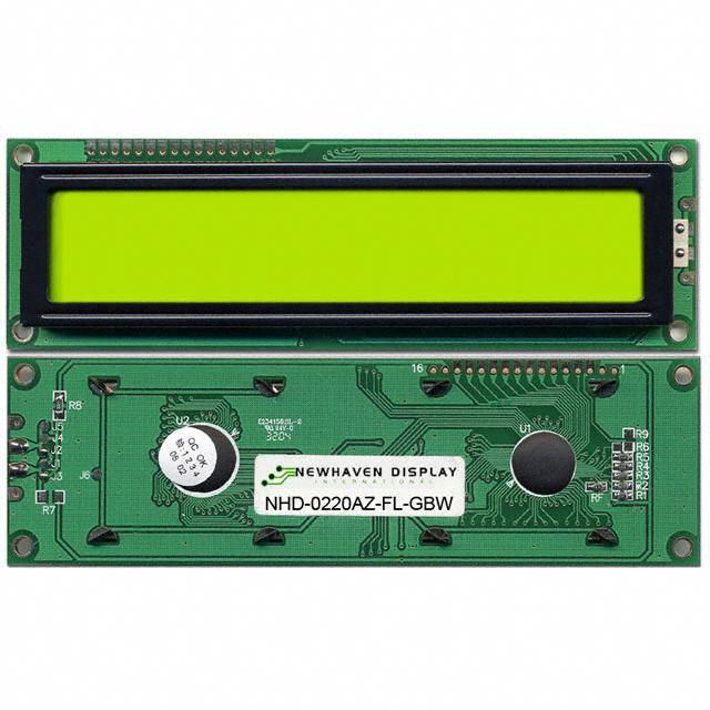 This is manufactured by Newhaven Display Intl. The manufacturer part number is NHD-0220AZ-FL-GBW. Its character size is 9.22mm h x 4.84mm w. It is assigned with possible HTSUS value of 8531.20.0020. The product is rohs3 compliant. It has a given 5 x 8 dots character format. It has a typical 20 x 2 display format. The product has -20°c ~ 70°c operating temperature range. In addition, it is reach unaffected. A bespoke product is parallel interface. It is shipped in box package . Provides a 123.00mm l x 23.00mm w viewing area. Its typical moisture sensitivity level is not applicable. The text is provided in gray colour. The product has a classic green background colour. It features a remarkable stn - super-twisted nematic display. Consists of 40 characters. Outline Specifications include in (L x W x H) - 146.00mm x 43.00mm x 14.20mm. It has optimum voltage supply of 4.7v ~ 5.5v. Moreover, it corresponds to nhd-0216, a base product number of the product. Typically has a transflective display mode. Has a dot size of 0.92mm w x 1.10mm h. Backlight Options - led - yellow/green. The product is designated with the ear99 code number.