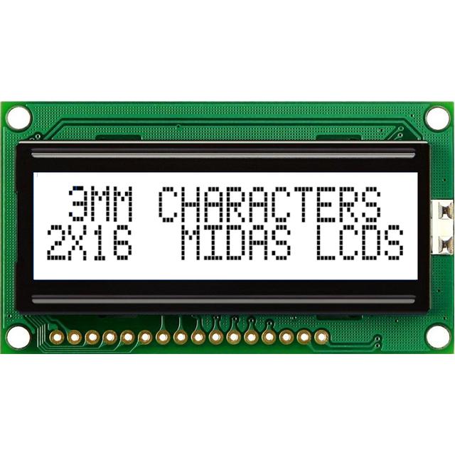 This is manufactured by Midas Displays. The manufacturer part number is MC21603A6W-FPTLW-V2. Its character size is 3.15mm h x 1.85mm w. It is assigned with possible HTSUS value of 8531.20.9500. The product is rohs3 compliant. It has a given 5 x 8 dots character format. It has a typical 16 x 2 display format. The product has -20°c ~ 70°c operating temperature range. The product has integrated with a st7066u, a versatile and functional controller. In addition, it is reach unaffected. A bespoke product is parallel interface. It is shipped in tray package . Provides a 36.00mm l x 10.00mm w viewing area. Its typical moisture sensitivity level is not applicable. The text is provided in black colour. The product has a classic white background colour. It features a remarkable fstn - film super-twisted nematic display. The product mc21603a, is a highly preferred choice for users. Consists of 32 characters. Outline Specifications include in (L x W x H) - 53.00mm x 20.00mm x 8.00mm. It has optimum voltage supply of 5v. Typically has a transflective display mode. Has a dot size of 0.33mm w x 0.35mm h. Backlight Options - led - white. The product is designated with the ear99 code number.