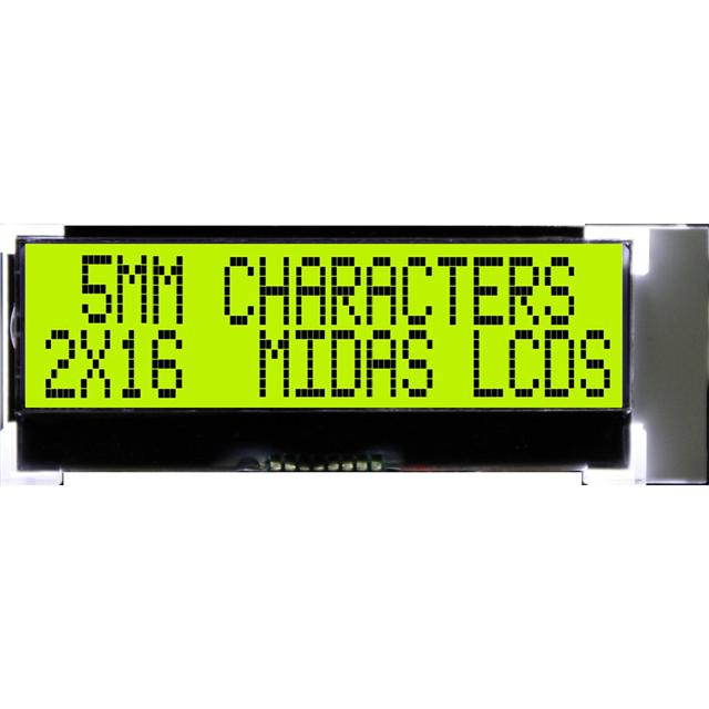 This is manufactured by Midas Displays. The manufacturer part number is MCCOG21605D6W-SPTLYI. Its character size is 4.67mm h x 2.60mm w. It is assigned with possible HTSUS value of 8531.20.9500. The product is rohs3 compliant. It has a given 5 x 8 dots character format. It has a typical 2 x 16 display format. The product has -20°c ~ 70°c operating temperature range. The product has integrated with a st7032i, a versatile and functional controller. Outline Specifications include in (L x W x H) - 62.80mm x 23.00mm x 6.30mm. In addition, it is reach unaffected. The midas displays's product offers user-desired applications. Provides a 51.50mm l x 12.20mm w viewing area. Its typical moisture sensitivity level is not applicable. A bespoke product is i2c interface. The text is provided in black colour. The product has a classic yellow/green background colour. It features a remarkable stn - super-twisted nematic display. The product mccog21605d, is a highly preferred choice for users. Consists of 32.0 characters. In addition, tray is the available packaging type of the product. It has optimum voltage supply of 3v ~ 5v. Typically has a transflective display mode. Has a dot size of 0.48mm w x 0.54mm h. Backlight Options - led - yellow/green. The product is designated with the ear99 code number.