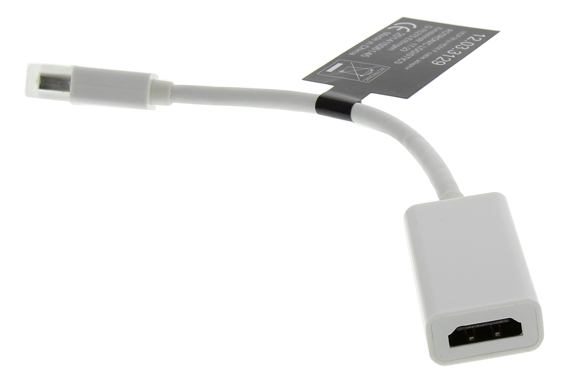 This is 100mm Mini Display Port Male to Female HDMI White KVM Mixed Cable Assembly manufactured by Roline. The manufacturer part number is RS_790-3937. Connector 2 is a female connector. This connector 1 is a male. The sheath has an adorable white colour. Its accurate length is 100mm. While the Connector 2 is hdmi. Connector 1 is mini displayport.