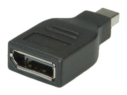 This is ROLINE Adapter DP-Mini DP F/M manufactured by Roline. The manufacturer part number is 12.03.3130-20. Connector 2 is a female connector. The product complies with all safety standards, such as rohs compliant. This connector 1 is a male. The sheath has an adorable black colour. While the Connector 2 is displayport. Connector 1 is mini displayport.