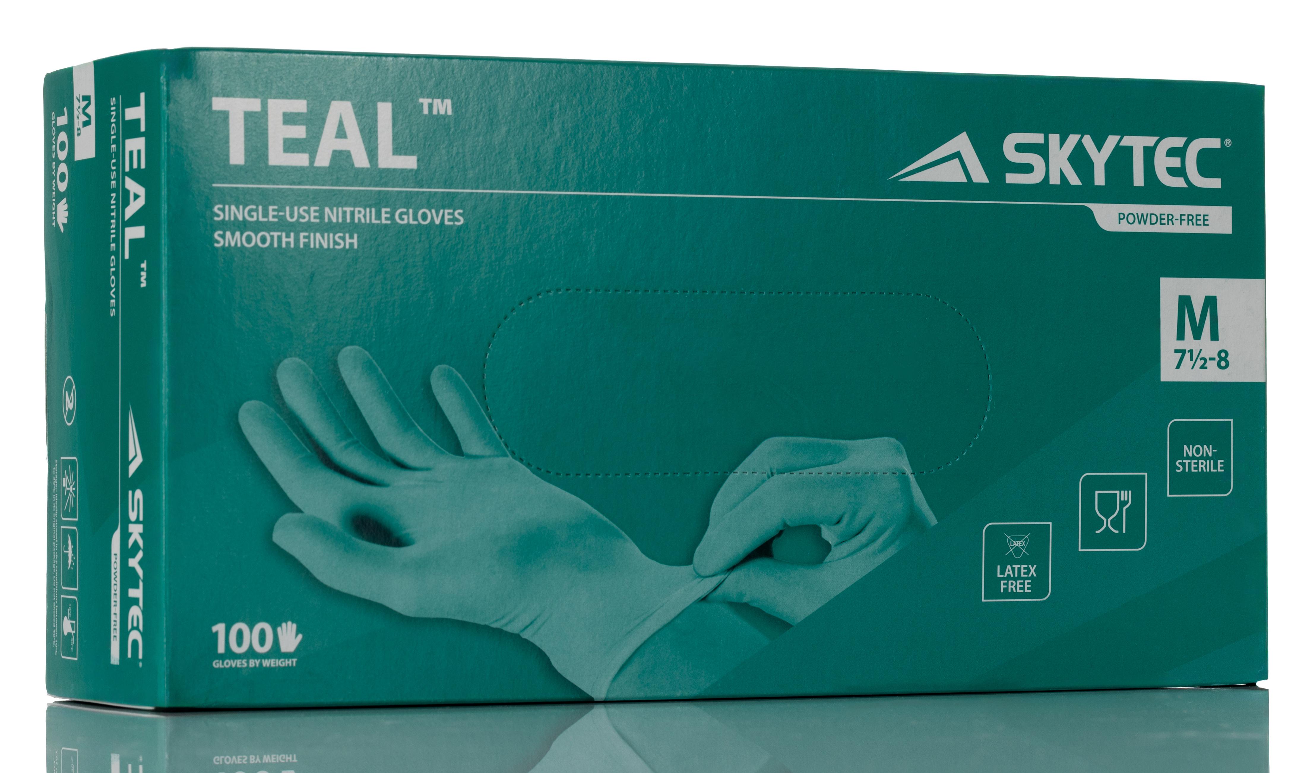This is Green Nitrile Gloves size 8 - M Powder-Free x 100 manufactured by Skytec. The manufacturer part number is SKYTEAL2. Additionally, its glove is made using nitrile material . It includes a chemical resistant type glove . It includes 100 gloves . It has a decent green colour. It features teal range. It is complies with en374, en455 European safety standard . It is powder-free . It is food safe yes . The glove has a 8, medium size. It has 1.5 accepted quality level AQL .