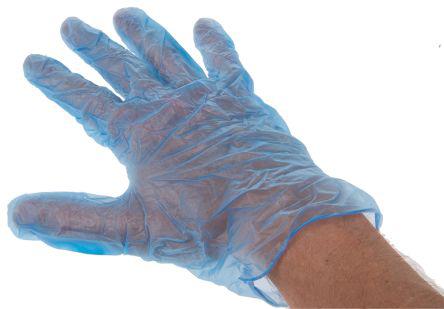 This is Blue Vinyl Vinyl Gloves size 9.5 - XL Pre-Powdered x 100 manufactured by RS PRO. The manufacturer part number is 777-5243. Additionally, its glove is made using vinyl material . It includes a minimal risk type glove . It includes 100 gloves . It has a decent blue colour. It is pre-powdered . It is food safe yes . The glove has a 9.5 - xl size. It has 1.5 accepted quality level AQL .