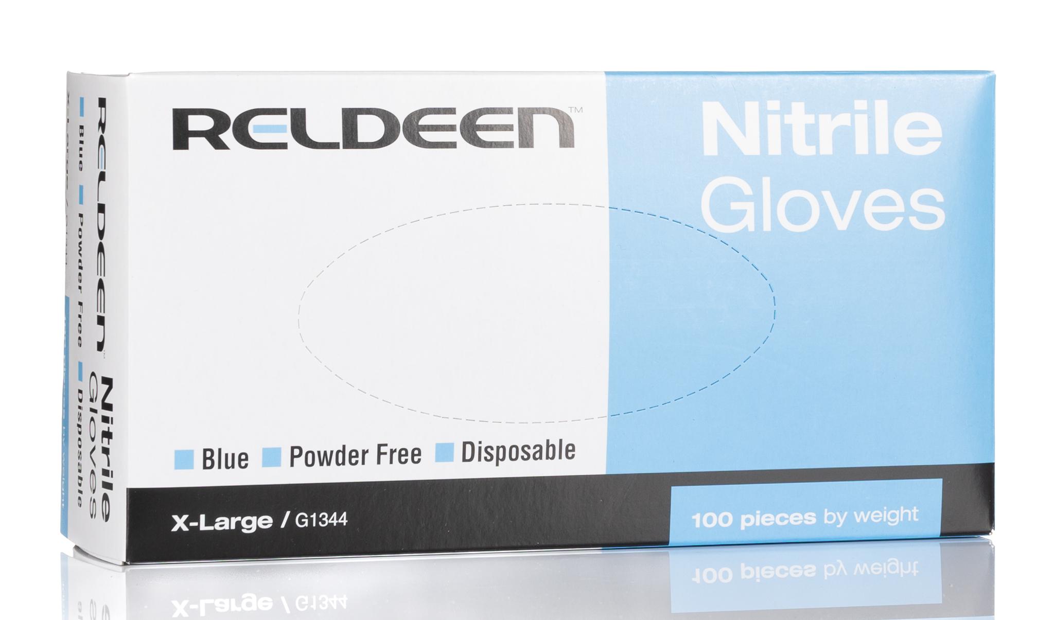 This is Blue Nitrile Disposable Gloves Size X-Large manufactured by Reldeen. The manufacturer part number is G1344. Additionally, its glove is made using nitrile material . It includes a chemical resistant type glove . It has a decent blue colour. It is complies with en374 European safety standard . It is powder-free . It is food safe yes . The glove has a xl size.