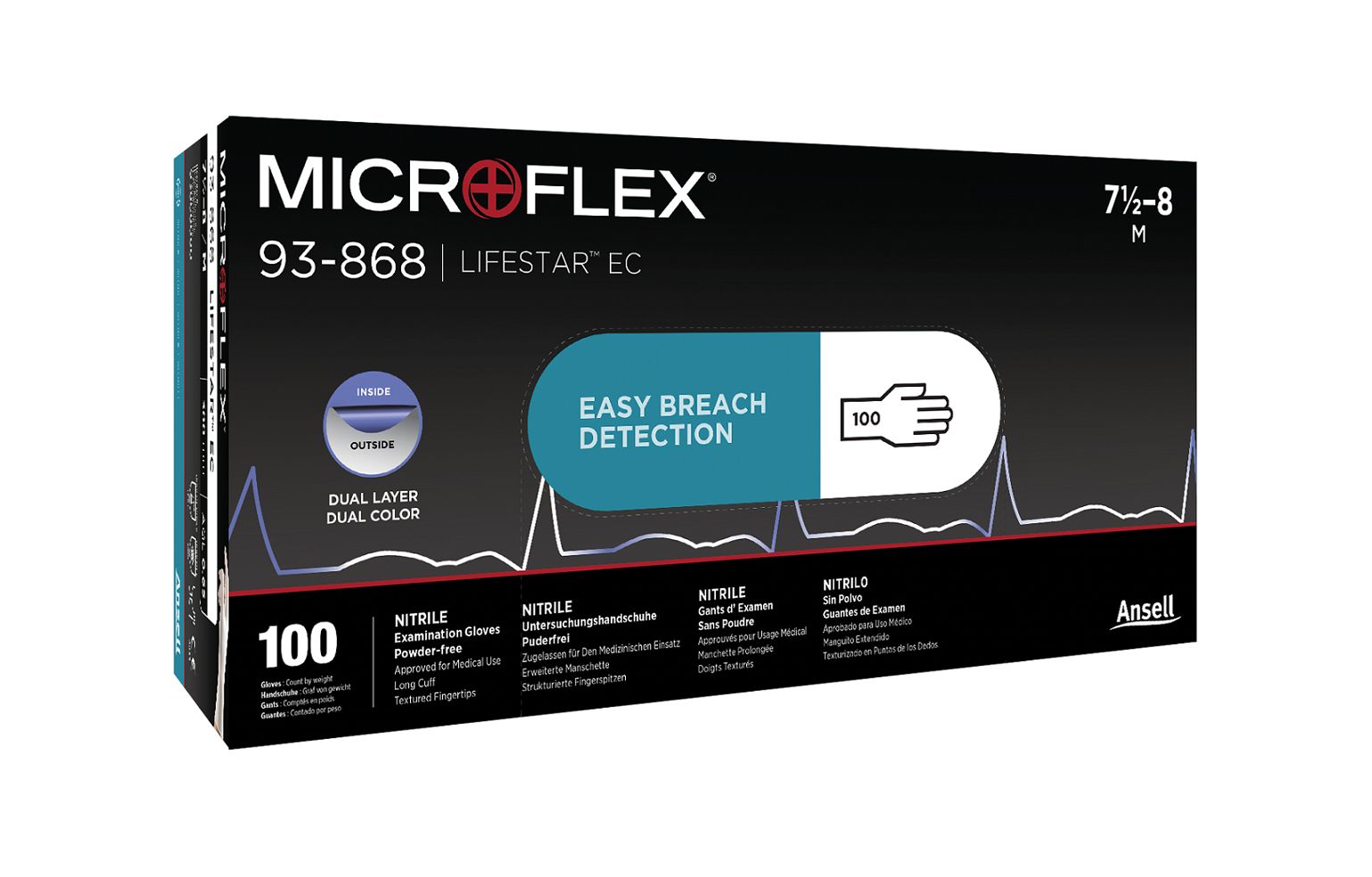 This is White Powder-Free Nitrile Disposable Gloves Size L manufactured by Ansell. The manufacturer part number is 93868090. Additionally, its glove is made using nitrile material . It includes a powder free type glove . Anti-Static Options - yes. It includes 100 gloves . It has a decent blue/white colour. It features 93-868 range. It is complies with en iso 374-1, en iso 374-5, en421, en455-1-4 European safety standard . It is powder-free . It is food safe yes . The glove has a 8.5-9, large size. It has 0.65 accepted quality level AQL . It has an American safety standard astm d6319 .